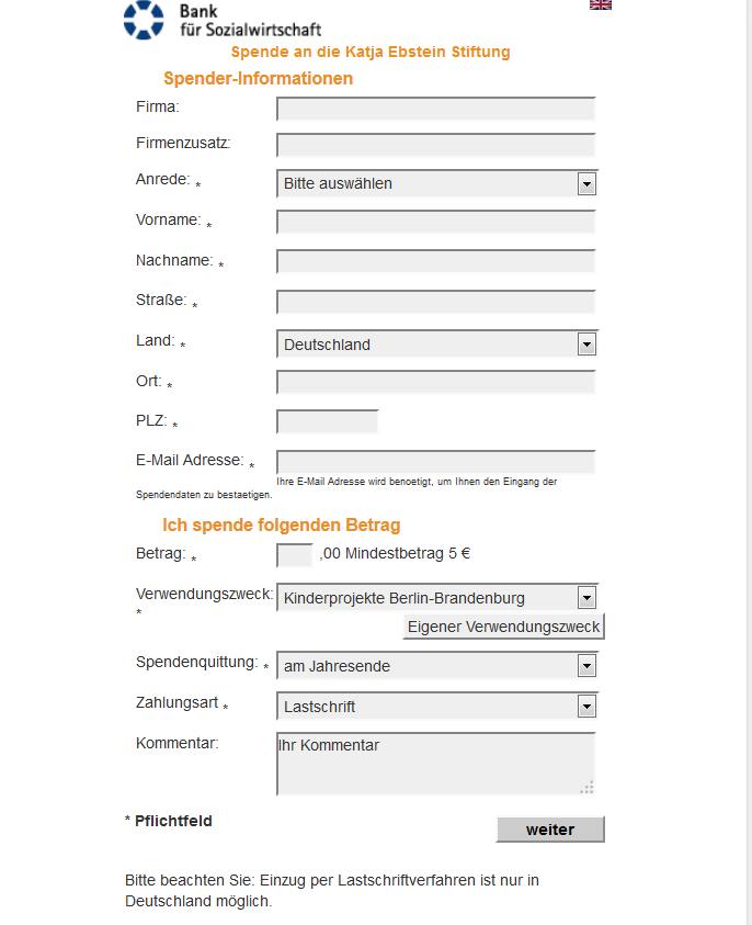 Dieser Link bringt Sie auf die Webseite der Katja Ebstein Stiftung. Dort können Sie unmittelbar spenden.